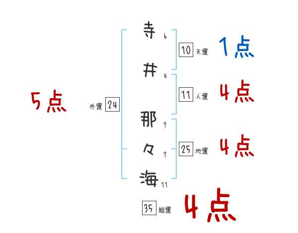 寺井那々海さんの画数の鑑定結果