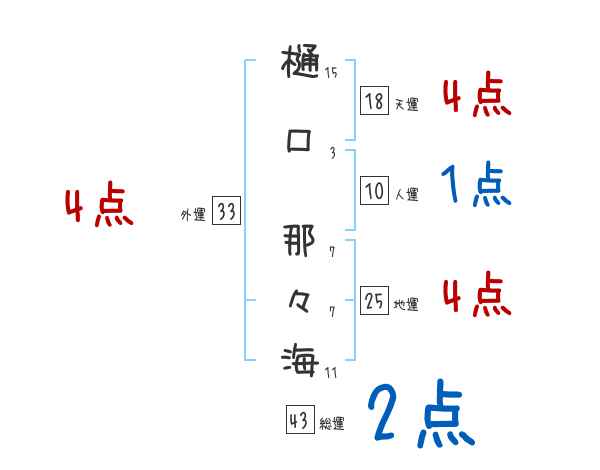 樋口那々海さんの画数の鑑定結果