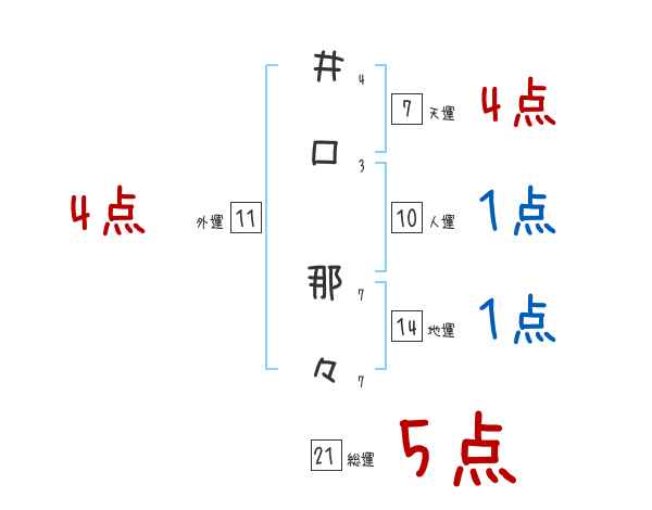 井口那々さんの画数の鑑定結果