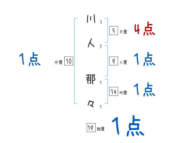天運![]() | 川人那々さんの天運は5画の4つ星!健康で安泰。協調性に優れ、財産に恵まれる。 家系が持つ宿命的な運勢を表します。祖先から受け継いだ苗字ですので自分の力が及びません。家柄を象徴します。 |