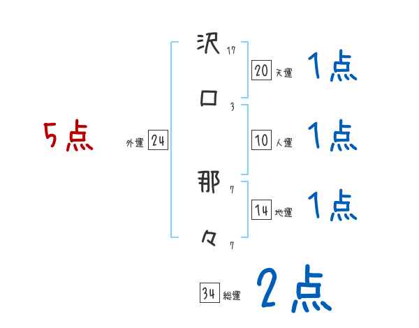 沢口那々さんの画数の鑑定結果