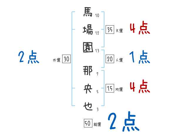 馬場園那央也さんの画数の鑑定結果