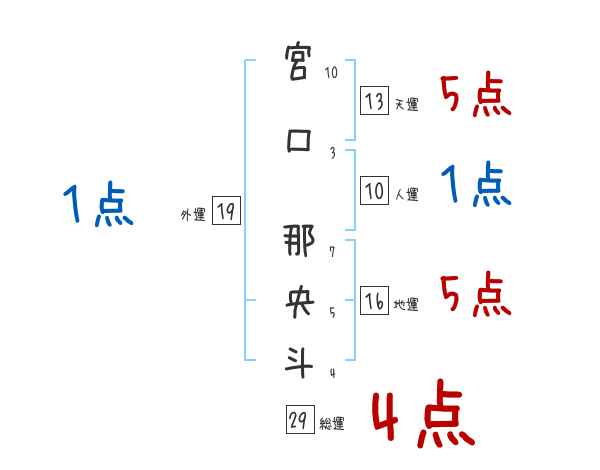 総運![]() | 宮口那央斗さんの総運は29画の4つ星!完全主義で才能がある。厳格な心の持ち主。 あなたの人生を表す1番重要な運勢です。生涯を通じて影響する総合運となり、主に50歳以降の晩年期に影響を及ぼします。 |