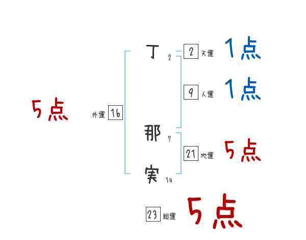丁那実さんの画数の鑑定結果