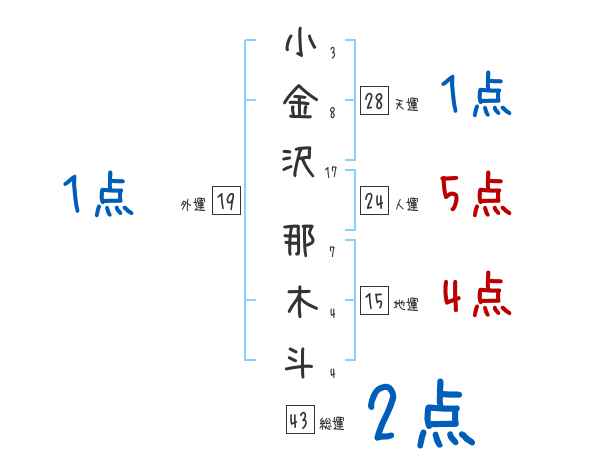 小金沢那木斗さんの画数の鑑定結果