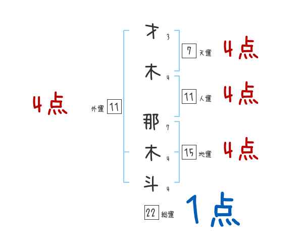 天運![]() | 才木那木斗さんの天運は7画の4つ星!強い意志や信念を持ち独立心が強い。自立する。 家系が持つ宿命的な運勢を表します。祖先から受け継いだ苗字ですので自分の力が及びません。家柄を象徴します。 |