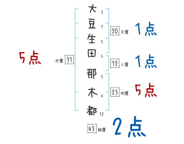 大豆生田那木都さんの画数の鑑定結果