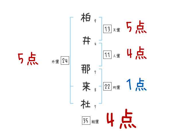 柏井那来杜さんの画数の鑑定結果