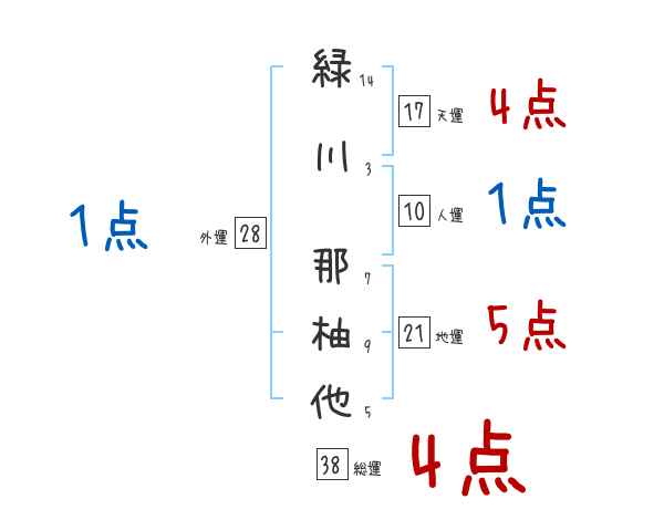緑川那柚他さんの画数の鑑定結果