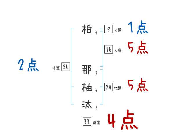 外運![]() | 柏那柚汰さんの外運は26画の2つ星!波瀾万丈かも。信頼できる人を大事にしましょう。 生活面を象徴する運勢です。外部から受ける影響力を表し、結婚運、家庭運や職場、環境への順応性を表します。 |