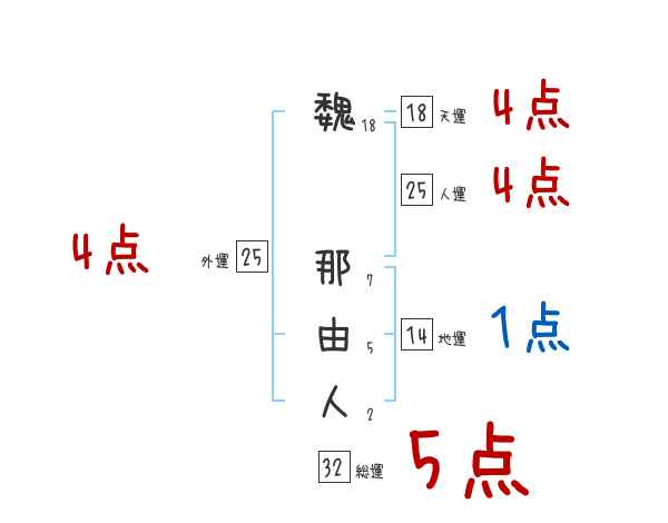 魏那由人さんの画数の鑑定結果