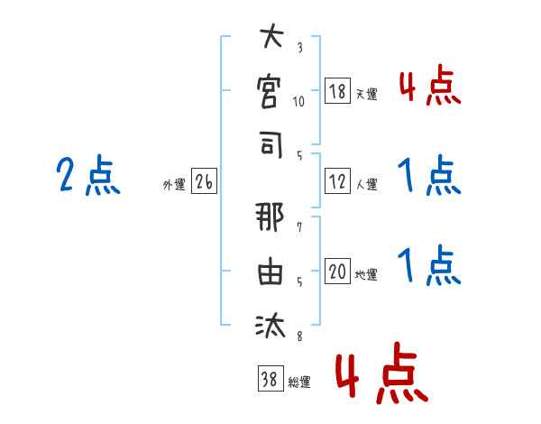 大宮司那由汰さんの画数の鑑定結果