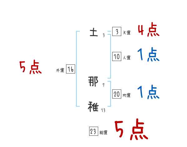 土那稚さんの画数の鑑定結果
