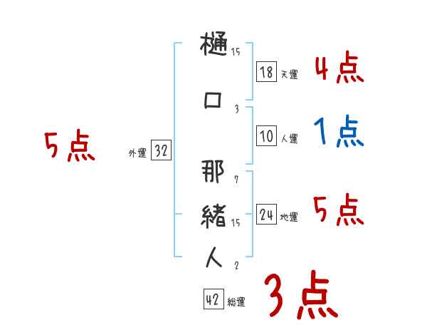 樋口那緒人さんの画数の鑑定結果