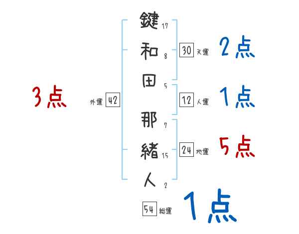 鍵和田那緒人さんの画数の鑑定結果