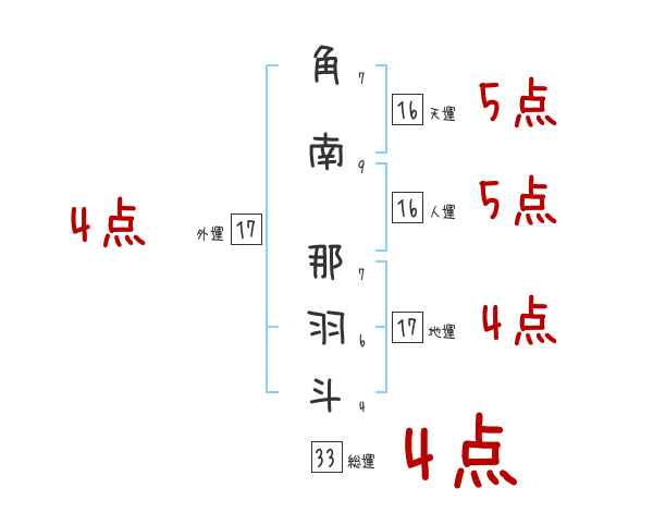 角南那羽斗さんの画数の鑑定結果