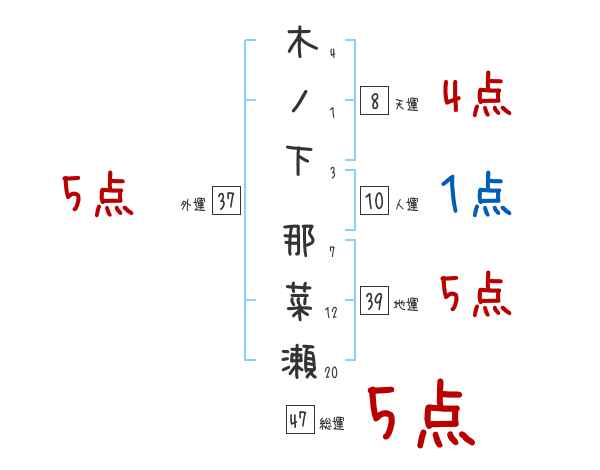 木ノ下那菜瀬さんの画数の鑑定結果