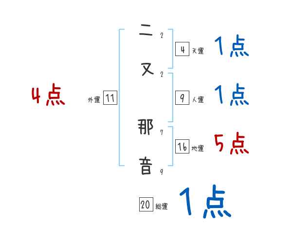 二又那音さんの画数の鑑定結果