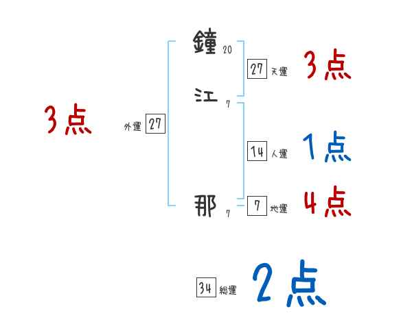 鐘江那さんの画数の鑑定結果
