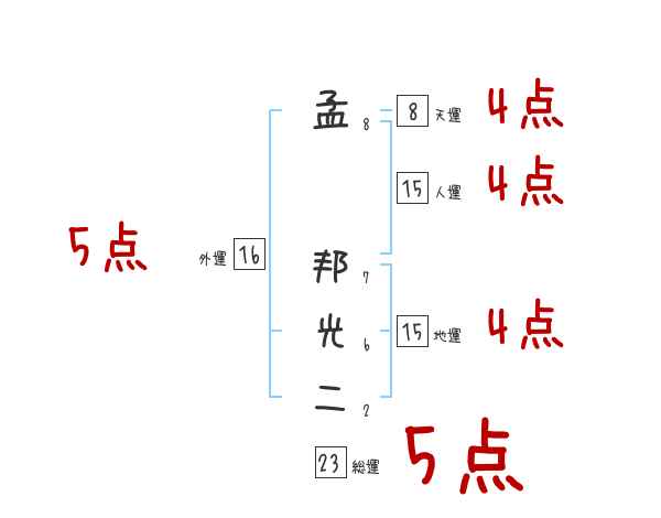 孟邦光二さんの画数の鑑定結果