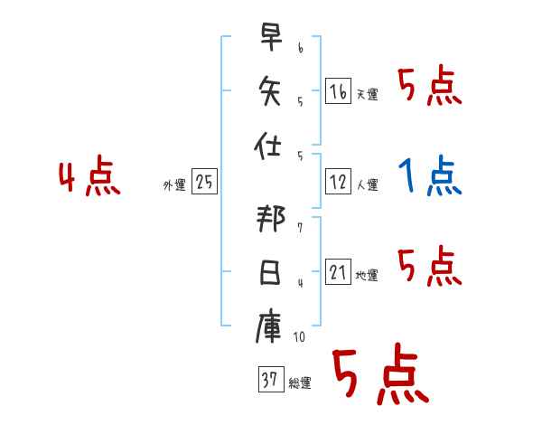 早矢仕邦日庫さんの画数の鑑定結果