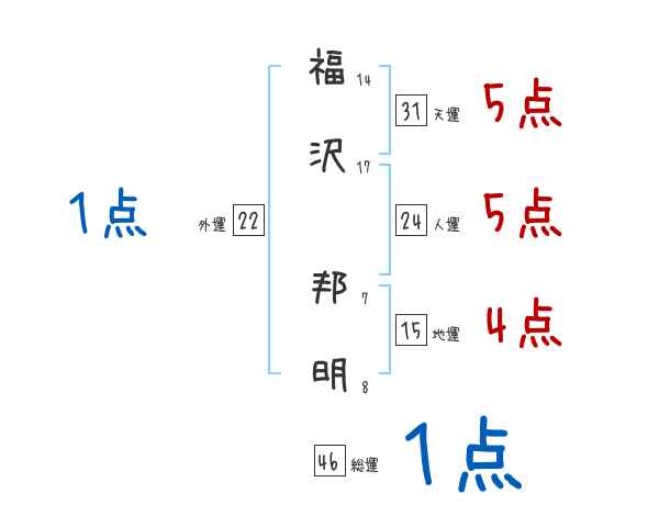 天運![]() | 福沢邦明さんの天運は31画の5つ星!社交性があり判断力に優れる。順風満帆な人生で円満な生活。 家系が持つ宿命的な運勢を表します。祖先から受け継いだ苗字ですので自分の力が及びません。家柄を象徴します。 |