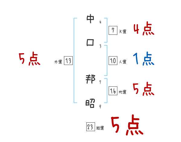 中口邦昭さんの画数の鑑定結果