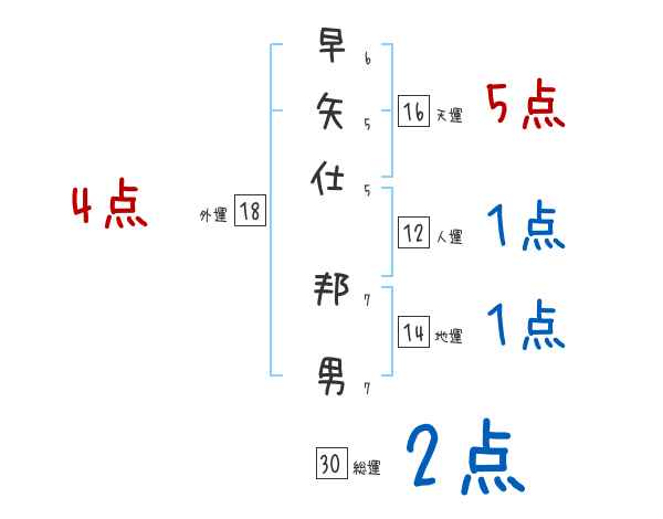 天運![]() | 早矢仕邦男さんの天運は16画の5つ星!人望が厚く大きく発展する。逆転成功が見える。 家系が持つ宿命的な運勢を表します。祖先から受け継いだ苗字ですので自分の力が及びません。家柄を象徴します。 |