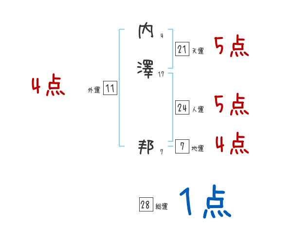 内澤邦さんの画数の鑑定結果