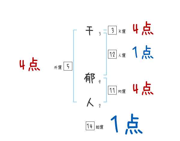 天運![]() | 千郁人さんの天運は3画の4つ星!活動的で才能に恵まれ、多くの信頼を得る。希望に満ち成長する。 家系が持つ宿命的な運勢を表します。祖先から受け継いだ苗字ですので自分の力が及びません。家柄を象徴します。 |