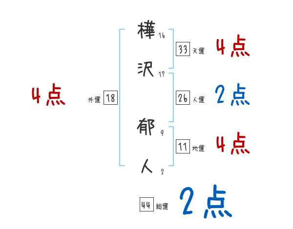 樺沢郁人さんの画数の鑑定結果