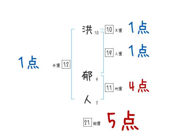 天運![]() | 洪郁人さんの天運は10画の1つ星!不安を感じやすい傾向。ストレスを抱えないように注意しましょう。 家系が持つ宿命的な運勢を表します。祖先から受け継いだ苗字ですので自分の力が及びません。家柄を象徴します。 |