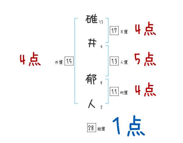 碓井郁人さんの画数の鑑定結果