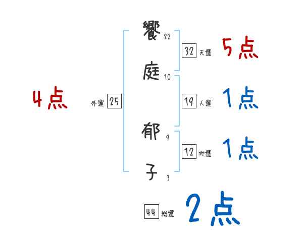饗庭郁子さんの画数の鑑定結果