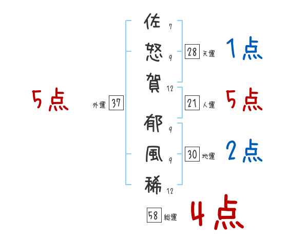 佐怒賀郁風稀さんの外運は37画の5つ星