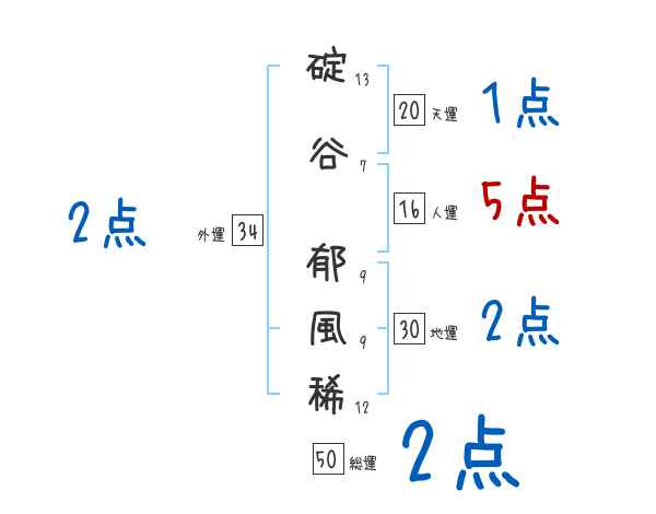 人運![]() | 碇谷郁風稀さんの人運は16画の5つ星!人望が厚く大きく発展する。逆転成功が見える。 性格や才能などを表す2番目に重要な運勢です。人間関係や協調性、社会的な成功に影響します。主に20歳から50歳ぐらいまでの中年期の運勢を表します。 |