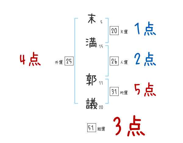 総運![]() | 末満郭議さんの総運は51画の3つ星!変化が激しく、危険に注意。堅実な性格。 あなたの人生を表す1番重要な運勢です。生涯を通じて影響する総合運となり、主に50歳以降の晩年期に影響を及ぼします。 |