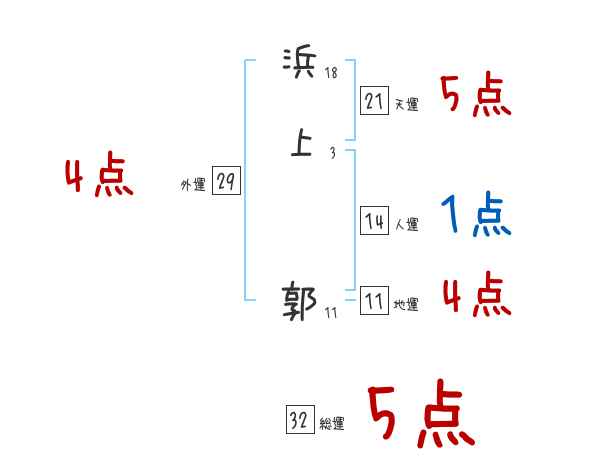 浜上郭さんの画数の鑑定結果