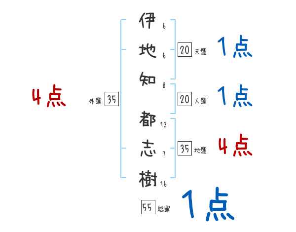 外運![]() | 伊地知都志樹さんの外運は35画の4つ星!温厚な性格で感受性が高い。穏和な性格で人望が厚い。 生活面を象徴する運勢です。外部から受ける影響力を表し、結婚運、家庭運や職場、環境への順応性を表します。 |
