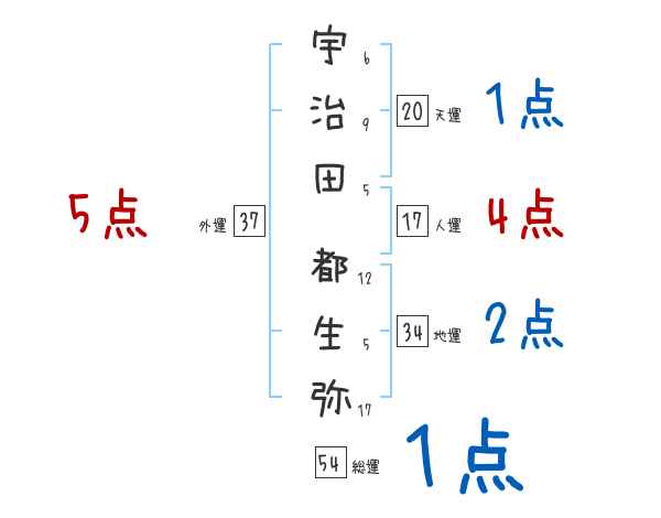 外運![]() | 宇治田都生弥さんの外運は37画の5つ星!努力家で順応性に優れる。現実的な考え方ができ忠実に物事をこなす。 生活面を象徴する運勢です。外部から受ける影響力を表し、結婚運、家庭運や職場、環境への順応性を表します。 |