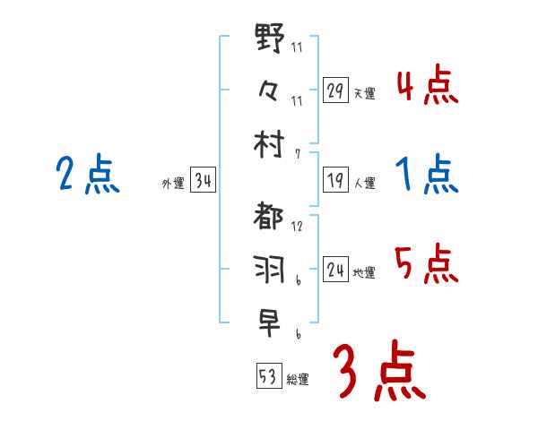 野々村都羽早さんの画数の鑑定結果