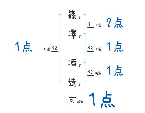 篠澤酒造さんの画数の鑑定結果