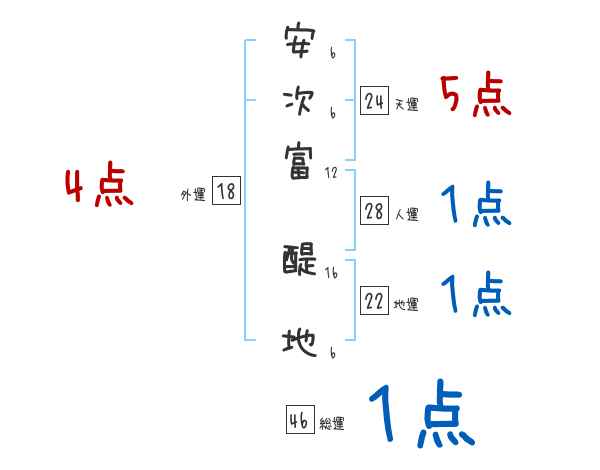 安次富醍地さんの画数の鑑定結果