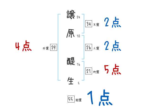 譲原醍生さんの総運は55画の1つ星