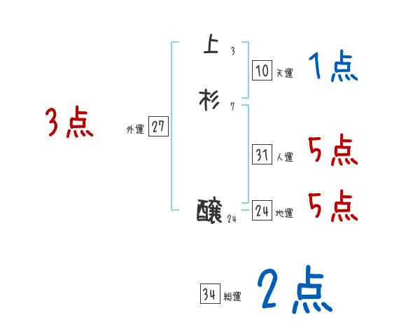上杉醸さんの画数の鑑定結果