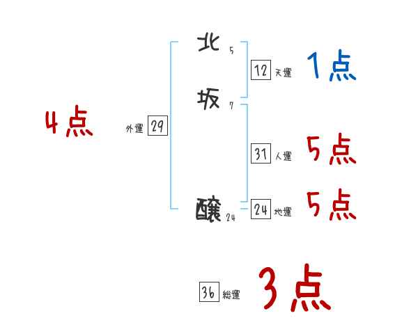 北坂醸さんの画数の鑑定結果