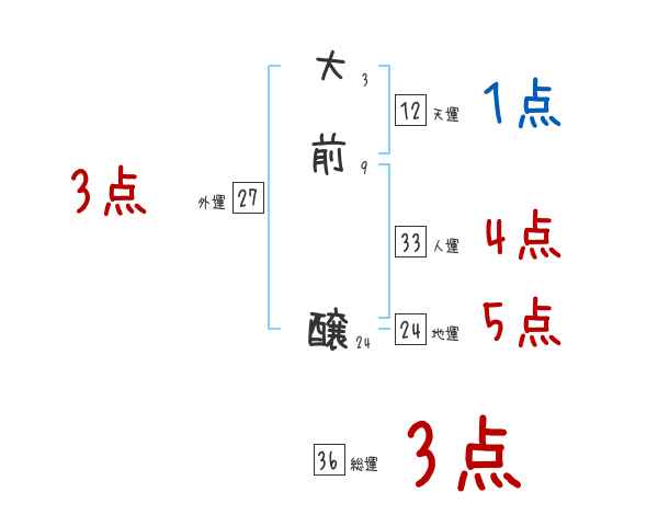 大前醸さんの画数の鑑定結果