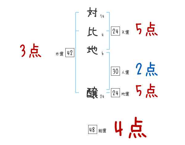 対比地醸さんの画数の鑑定結果