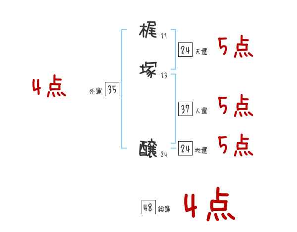 梶塚醸さんの画数の鑑定結果