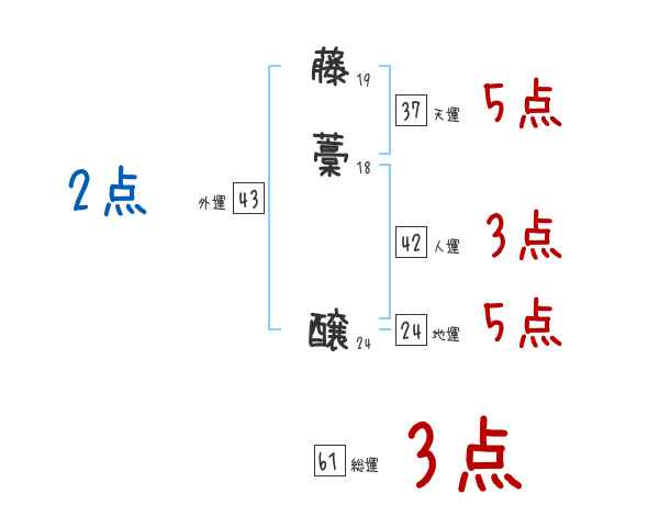 天運![]() | 藤藁醸さんの天運は37画の5つ星!努力家で順応性に優れる。現実的な考え方ができ忠実に物事をこなす。 家系が持つ宿命的な運勢を表します。祖先から受け継いだ苗字ですので自分の力が及びません。家柄を象徴します。 |